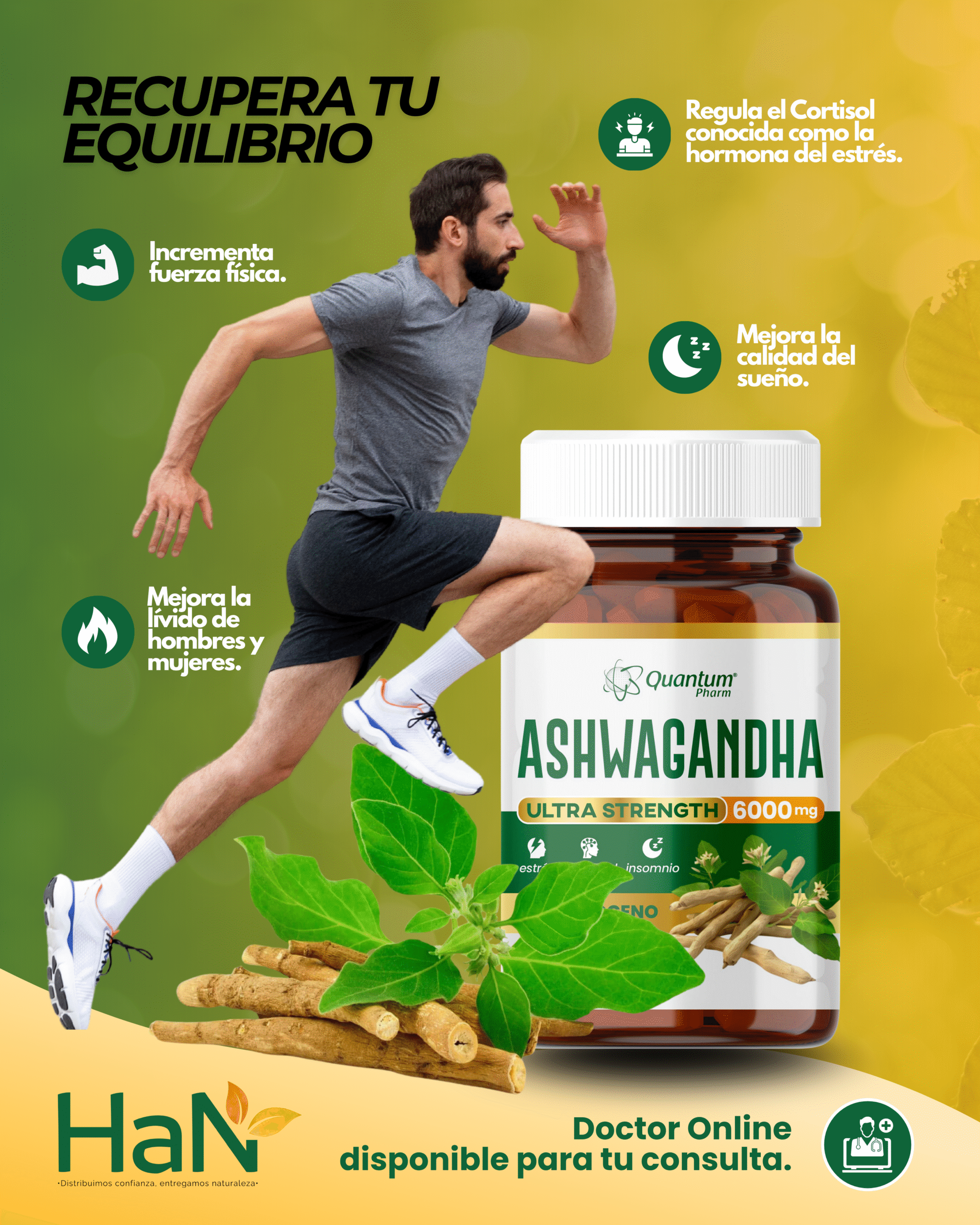 Adaptógeno natural, relajante suave y antiestrés. Descubre el poder de la Ashwagandha, una planta milenaria que te ayuda a mantener la calma, recargar tu energía y rendir al máximo cada día. Clínicamente comprobada, es ideal para reducir el estrés y mejorar nel sueño y enfocar la mente, si buscas equilibrio, vitalidad y un impulso natural para el cuerpo y mente, la Ashwagandha es tu mejor aliada.